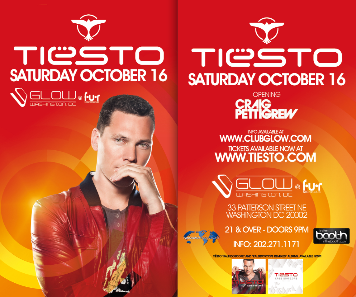 There are limited tickets available. This event will sell out. Tickets go on sale to members of Tiësto’s “In the Booth” Fan Club (www.tiestotickets.com for details) on Friday, August 27. They will be available to the public on Friday, September 3 at www.clubglow.com.